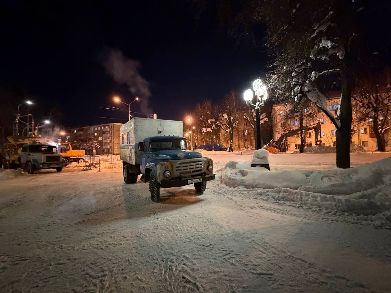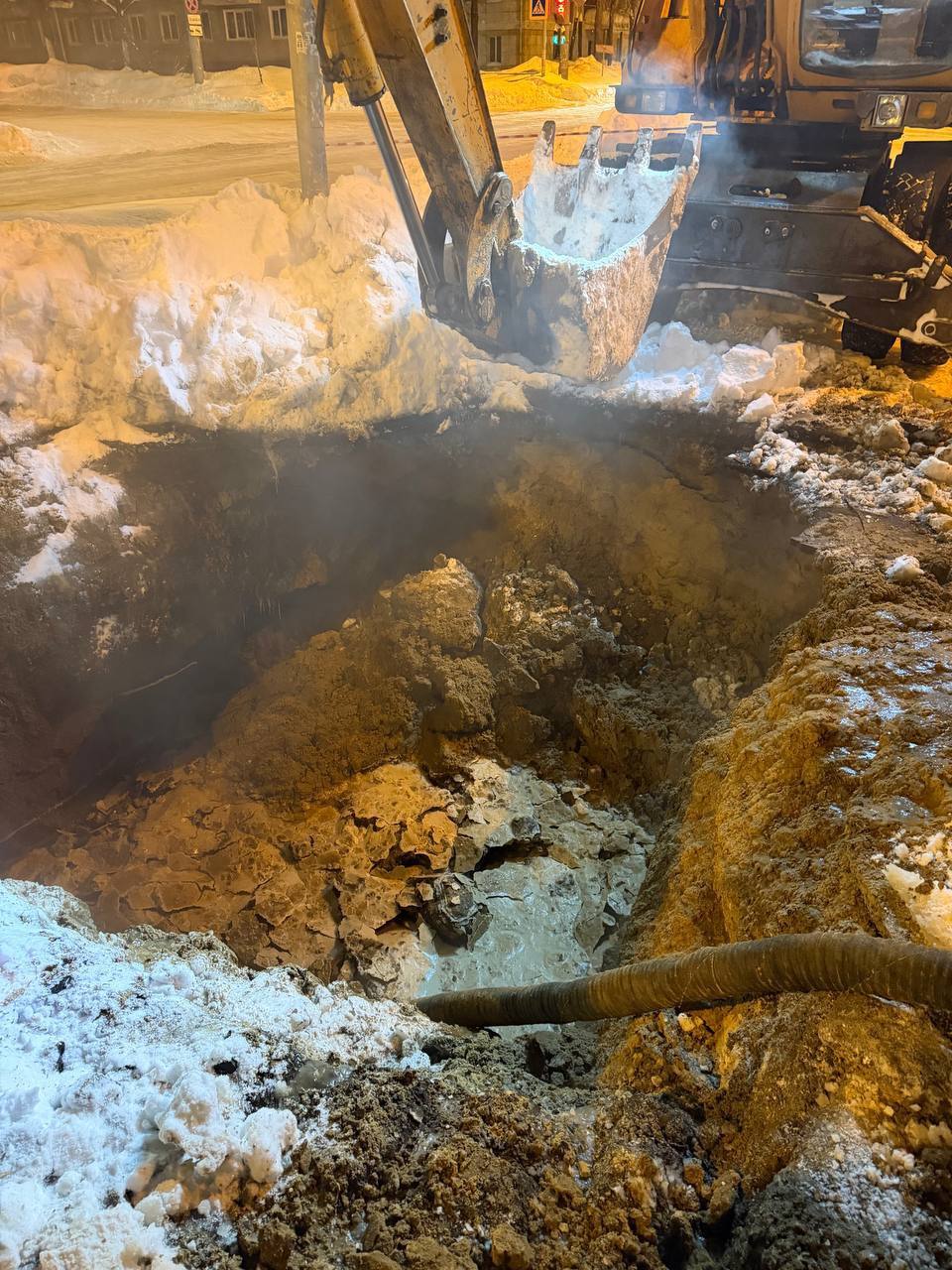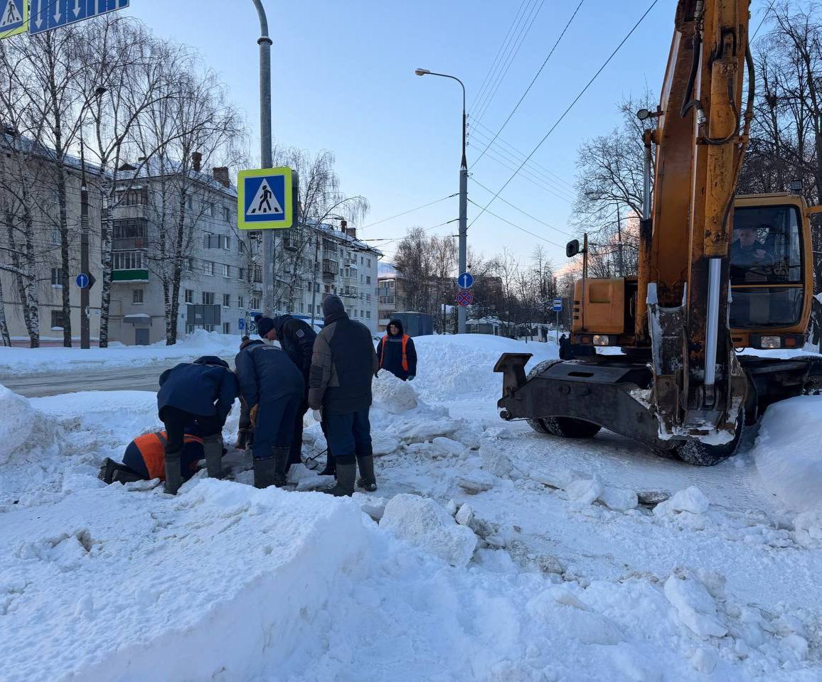 Несмотря на сильный мороз, бригады делают всё возможное, чтобы как можно скорее возобновить водоснабжение жителей. Для жильцов домов организован подвоз воды.